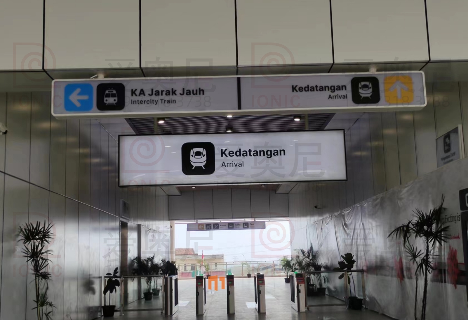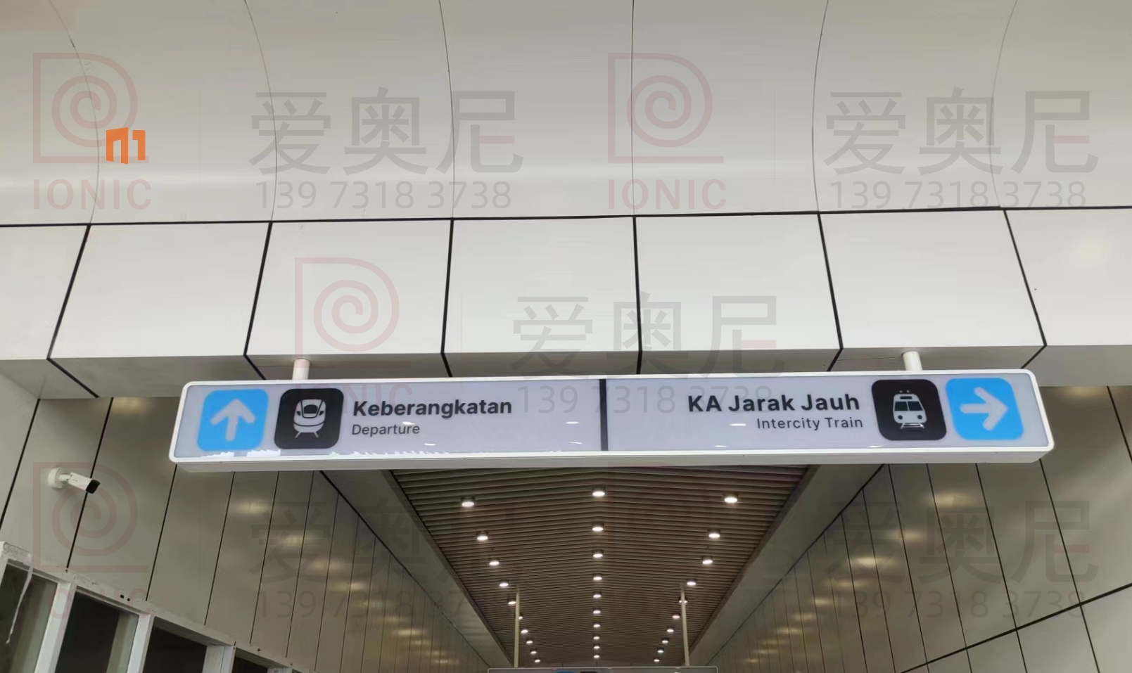 2023年9月7日,東南亞第一條高速鐵路雅萬高鐵正式開通運營。雅萬高鐵是東南亞第一條高速鐵路,也是中國高鐵首次全系統(tǒng)、全要素、全生產鏈在海外落地的高速鐵路項目;雅萬高鐵西起雅加達的哈利姆站,東至萬隆的德卡魯爾站,共設有4座車站,正線長142.3KM,設計時速為350km/h,最高運營速度也可達到350km/h。愛奧尼為雅萬高鐵四座車站中的帕達拉郎站提供全站的靜態(tài)標識生產和安裝指導服務工作,本項目時間緊任務重,公司依托多個的車站靜態(tài)標識項目的服務經驗,在最短的時間內保質保量的完成了生產工作以及現(xiàn)場安裝指導服務,并獲得業(yè)主的高度認可。