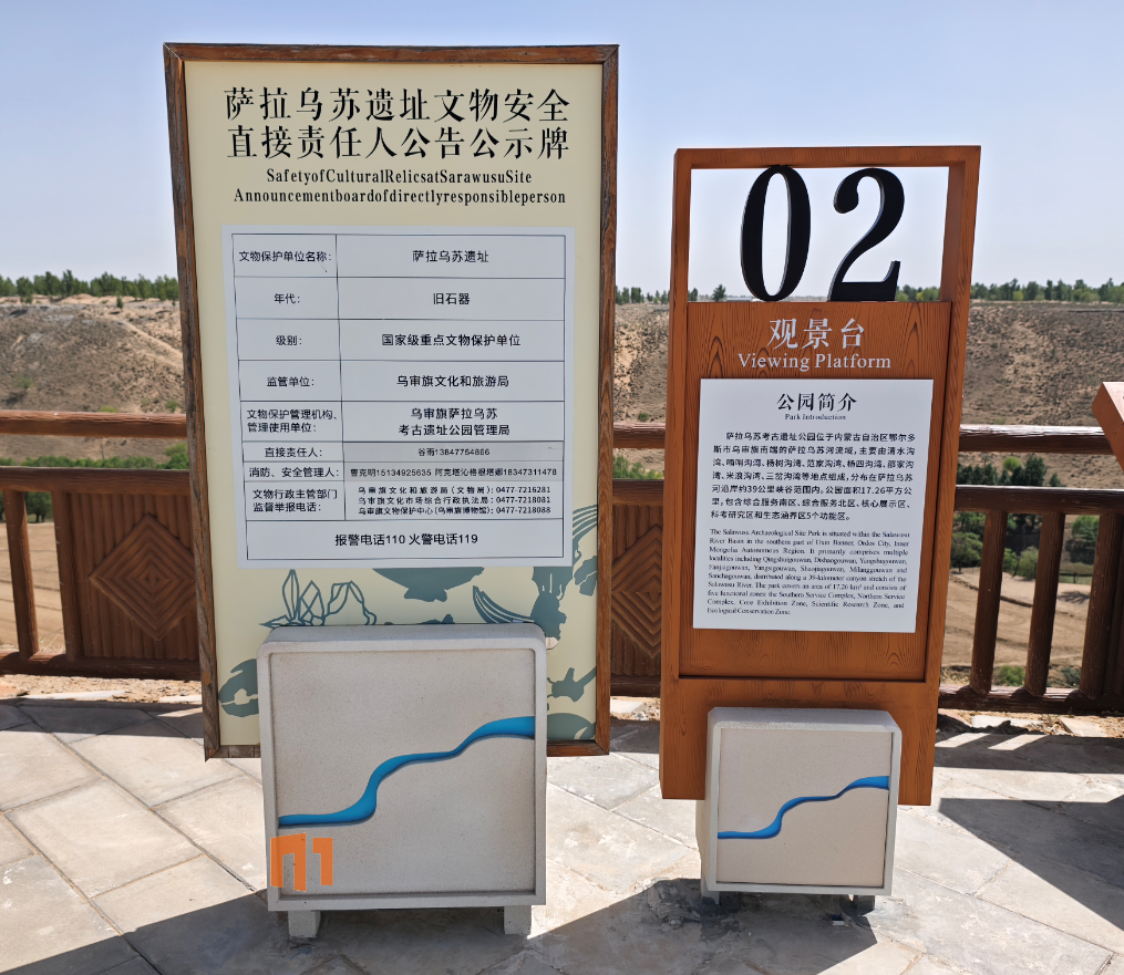 薩拉烏蘇遺址是中國(guó)北方重要的舊石器時(shí)代遺址 ,距今約3.5萬(wàn)至5萬(wàn)年,以“河套人 ”化石和豐富的石器文化聞名,被譽(yù)為“東亞古人類研究的圣地 ”。作為國(guó)家級(jí)重點(diǎn)文物保護(hù)單位,其導(dǎo)視系統(tǒng)需滿足文物保護(hù)、游客引導(dǎo)、科普教育 三大核心需求。